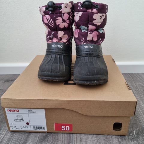 Yhden lapsen käyttämät todella siistit uudenveroisessa kunnossa olevat siniset loskarit. Kuvissa musta vedenpitävä kumiosa saattaa näyttää haalistuneelta, mutta on luonnossa tummempi.