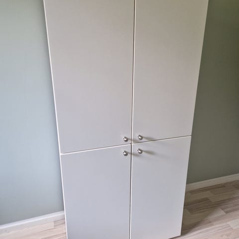 Käytön jälkeä on jonkin verran – sivulla ja päällisessä etenkin reunoissa (näkyy kuvissa), mutta kokonaisuudessaan tukeva ja toimiva kaappi.