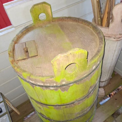 150 pitkä ja 150 leveä tammitynnyri. Keskeltä leveämpi. Yksi lauta irti. Myydään tarjousten perusteella.