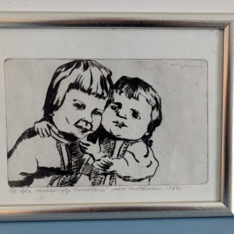 Pertti Kolehmaisen Matkalla niminen signeerattu etsaus vuodelta 1980.