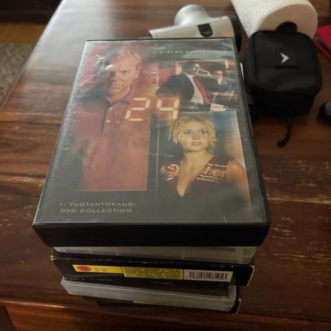 24-sarjaa 7 kautta sekä elokuva. 2 kautta yhä muoveissa. Savuton kissatalous.