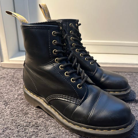 Dr. Martens bootsit kokoa 37. Malli 1460. Mustaa nahkaa. Nauhat vaihdettu Eezybeezyn pikanauhoihin.