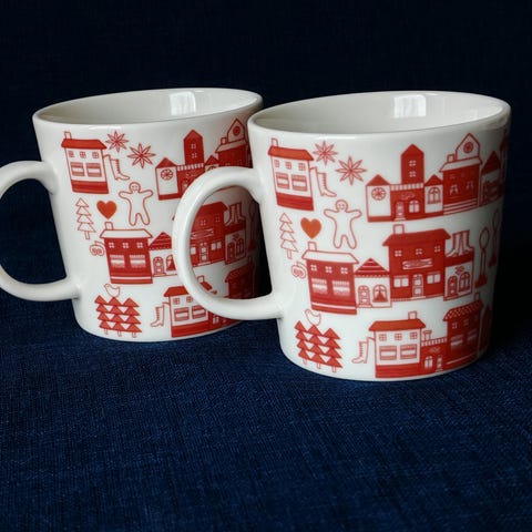 Arabia Joulukylä muki ja Joulusydän muki, käyttämättömiä, alkuperäisillä tarroilla.
