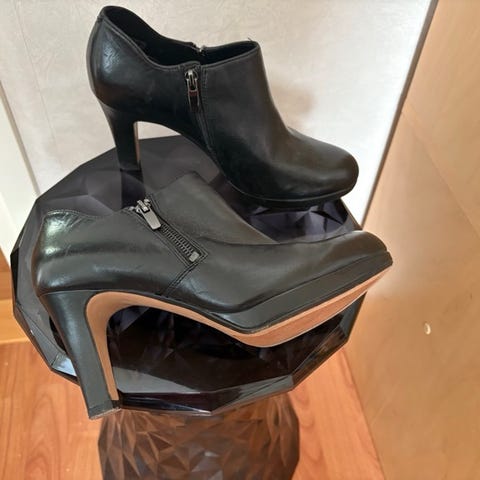 Mustat mokkapintaiset korkkarit koossa UK 4 1/2 eli EU koossa n. 37,5. Koron korkeus n. 7cm