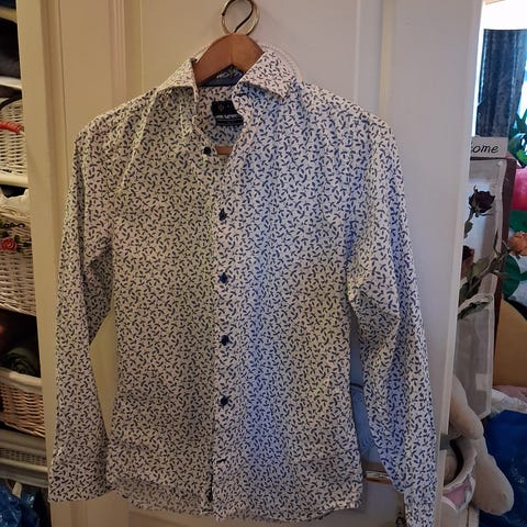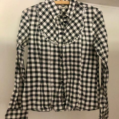 H&M naisten paitapusero, koko 34. Raidallinen kuviointi, pitkähihaiset hihat ja napit edessä.