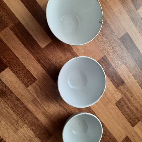 Arabian vanhat murokulhot, Karelia, Taika ja kolmas todella kaunis syvä tummansininen. Myyn kaikki mieluiten yhdessä. Halkaisija kahvattomasta kohdasta n 14cm ja korkeus n 5,5cm
