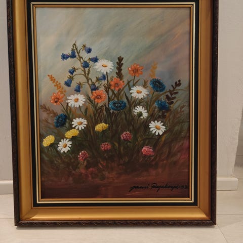Kolmen kappaleen setti abstrakteja alkoholimustemaalausteniikalla toteutettuja maalauksia, joissa on keltaisia ja harmaita sävyjä. Jokainen maalaus on signeerattu taiteilijan toimesta, valmistumisvuosi 2020. Koot iso keltainen 50 x 70, pienemmät 42 x 50 cm (kehyksen ulkomitat). Kolme taulua yhteishintaan 90 euroa.