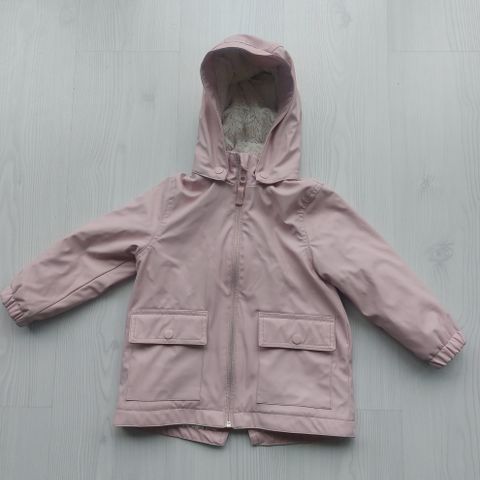 Myydään vaaleanpuneinen sadetakki. Ehjä ja hyvässä kunnossa, vähän tummentumaa pinnassa sisä- ja ulkopuolella. Koko 104.