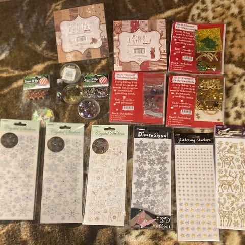 Tuttufruttipussissa sekalainen setti tavaraa. Kuvissa infoa. Joulupukinsäkit koko 55x86cm. Piparkakkutalon ohjeet ja muotit.