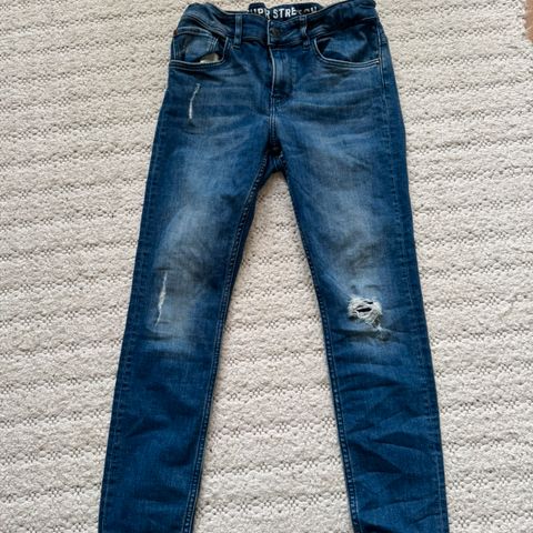 2 x strech farkut joissa kuminauha&nappikiristys. Molemmat oiekon hyväkuntoiset ja muutaman kerran käyetyt, toiset ihan alunperinkin ollut revitys, niissä kohdissa kangas alla. Yhteensä 7 euroa