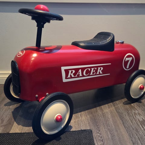 Bagheran aivan ihana v.punainen metallinen potkutteluauto. Sopiva 1-3 vuotiaalle, auton pituus n.75cm, korkeus istuimen kohdalta n.25cm. Uutena ostettu ja yhdellä lapsella käytössä ollut vain sisätiloissa. Yleisilmeeltään hyvässä kunnossa, maalin kulumisen jälkiä nähtävissä lähinnä ratin ja puskurien harmaissa muoviosissa kts.kuvat, halutessaan olisi varmasti helppo fiksata maalilla siistiksi. Vain nouto.