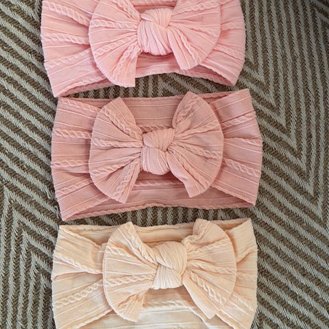 Myydään kaksi hyvin vähän käytettyä rusettipantaa koossa 3, sopii arviolta 50-52 cm päähän. Meillä kävi tosin aika pian pieneksi, joten voi olla että menee pienempään päähän paremmin. 5e/kpl.
