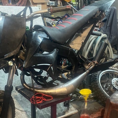 Leovince tehoputki vasemmalle puolelle, eli sopii derbiin yms. Löytyy kiinnikkeet ja jouset. Änkän kiinnikettä ei löydy. sieltä täältä löytyy hiukan ruostetta