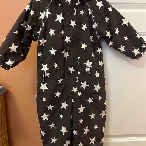 Paljon käytetty talvihaalari. Toisessa polvessa päälliskankaassa pieni reikä, pepussa ja heijastimissa kulumaa.
