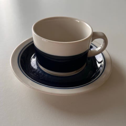 Arabia Kasino -sarjan kahvikuppi. Klassinen sinivalkoinen design, ajaton ja keräilijöiden suosikki. Valmistettu laadukkaasta posliinista. Sopii täydellisesti kokoelmaan tai päivittäiseen käyttöön.