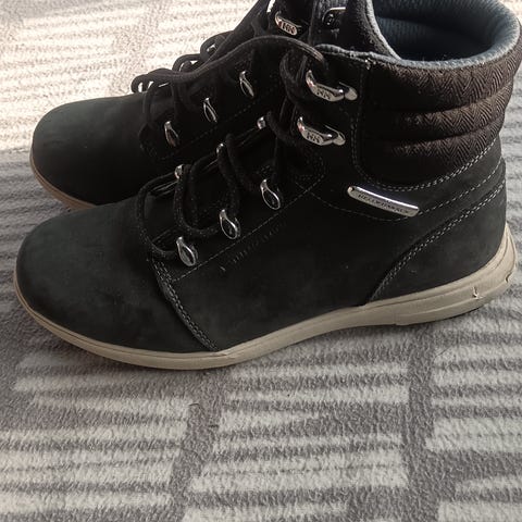 Kengät ovat korjauksen jälkeen, pohjat liimattu hiemän edestä. Koko lukee 38 vasta kokoa 37 tai 37,5. Sisämitta 23,5 cm.