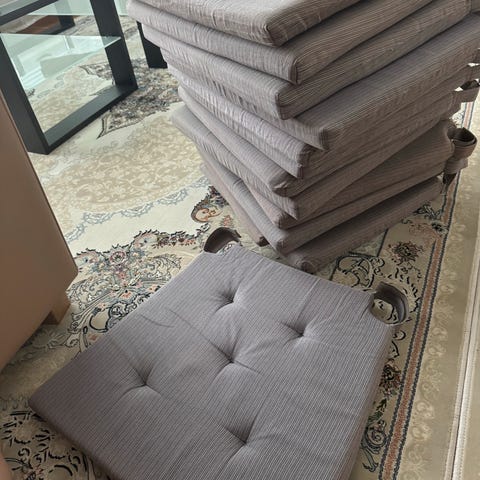Kuvan mukaiset, hyväkuntoiset tuolien pehmusteet, kuvissa mitat