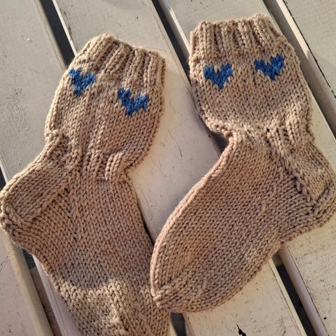 * Vaaleat sukat. Ei villaa. Laadukas Novitan lanka.. Ei kantapäät, joten käy pitkään.