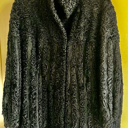 Krimiturkki musta polvipituinen ompeluprojektiin ym, lammasturkis.
