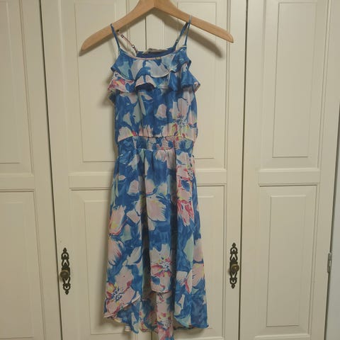 Myydään H&M sininen Sydän mekko hupulla koko 134/140cm