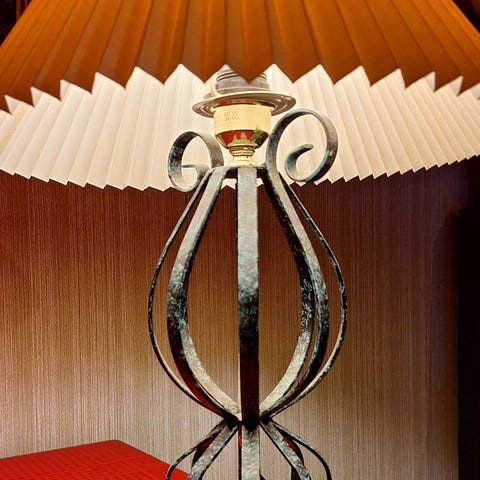 Kaunis roosasävyinen pöytävalaisimen jalka.