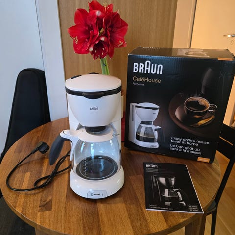 Käytetty yhdessä tilaisuudessa. 10 kuppia. Väri miellyttävä vaalea. Kuvassa näyttää kellastuneelta mutta ei ole. Kestosuodatin mukaan