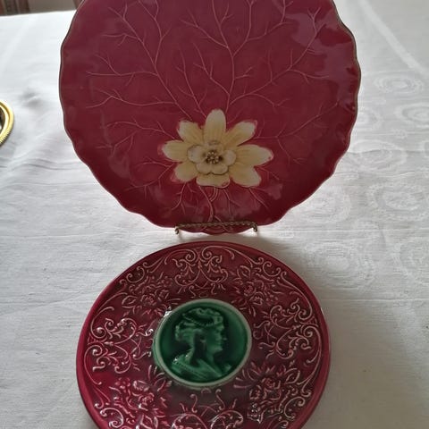 majolika, majolica-lautanen, majolika-lautanen, majolica-seinälautanen, majolika-seinälautanen, antiikki, antiikkilautanen, Antique Art Nouveau Wall Plate Floral Majolica Art Nouveau 1890 Dandelion Relief