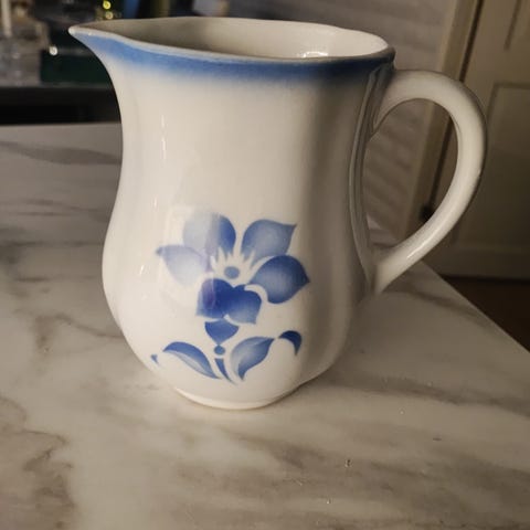 Virheetön ja ehjä posliini kermakko. Eläintalous. Kulkeutuu Pieksämäen keskustaan omien menojen mukaan.