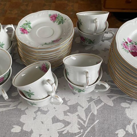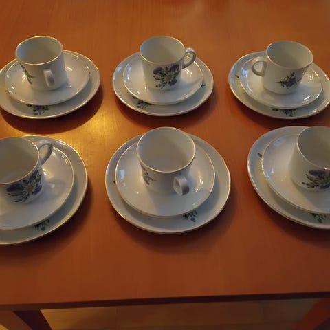 12 kpl kahvikuppia, 12 kpl pikkutassia, 12 kakkulautasta ja