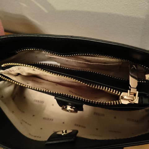 Aito GUESS olkalaukku. Uusi ja käyttämätön. Sisällä vielä Silica-geelitkin. Ostettu Kanadasta Calgaryn GUESS-liikkeestä.