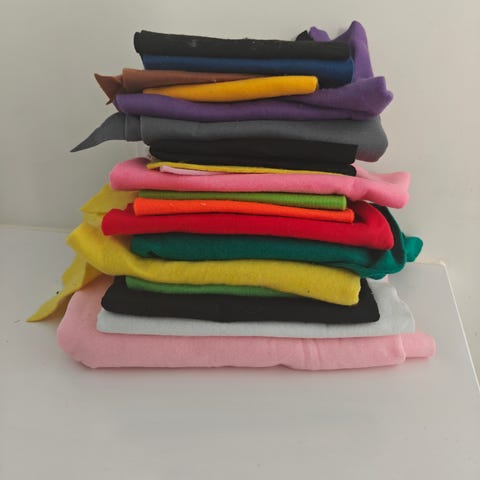 Myynnissä askarteluhuopaa. Sopii hyvin askartelu- ja käsityöprojekteihin. Eri värejä. Osasta saattaa olla leikattu vähän.