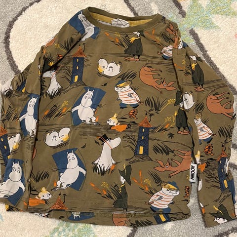 Myydään Muumi-aiheinen t-paita kokomerkinnällä 90. Nouto Vallilasta Helsingistä tai lähetys ToriDiilillä.