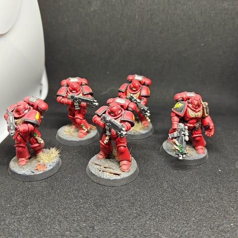 Tästä jollekkin onnekkaalle 2640 pisteen edestä blood angeleita. Setti sisältää pelivalmiin armeijan josta osan olen maalannut loppuun ja osaa en. Kaikki minit on kuitenkin vedetty Vallejon laadukkaalla primerillä suoraan ruiskusta niin jälki on tasaista. Eräs sotamies on myös suht koht harvinainen ;)