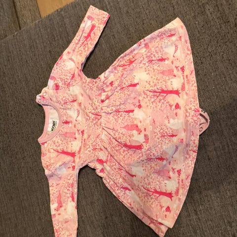 Muumi mekko koossa 56, väriltään kirjava. Mekossa on pitkä hiha ja se on valmistettu pehmeästä materiaalista, sopiva tytöille. Mekon kuosi sisältää värikkäitä kukka- ja Muumi-hahmoja. Kunto erinomainen. Savuton ja eläimetön talous.