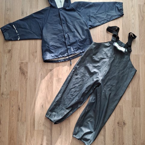 Siisti ja ehjät kurahousut ja takki kokoa 98-104cm. Housun lahkeissa väri hieman haalistunut, jalkalenksut uusittava. HUOM! meillä asustaa kaksi kissaa.