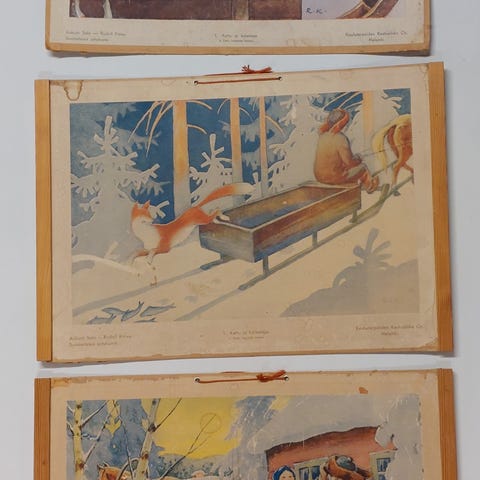 Kettu ja Kalastaja sadusta. Kerrankin jotain muuta kuin uskonnollisia tai kasveja. Kolmen sarja. Kaikki tietty kerralla.