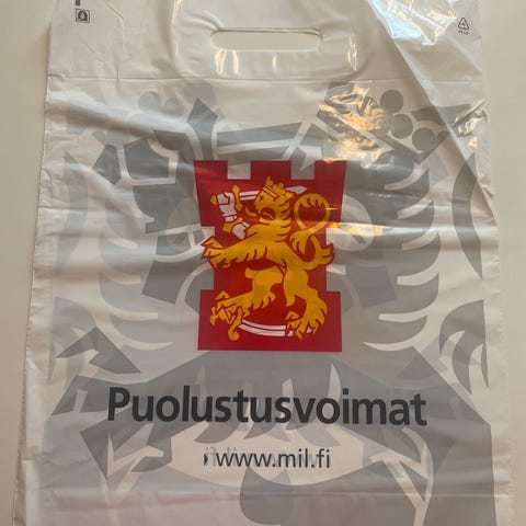 Puolustusvoimat muovikassin koko n. 34cm x 45cm, kuin uusi.
