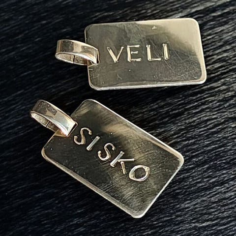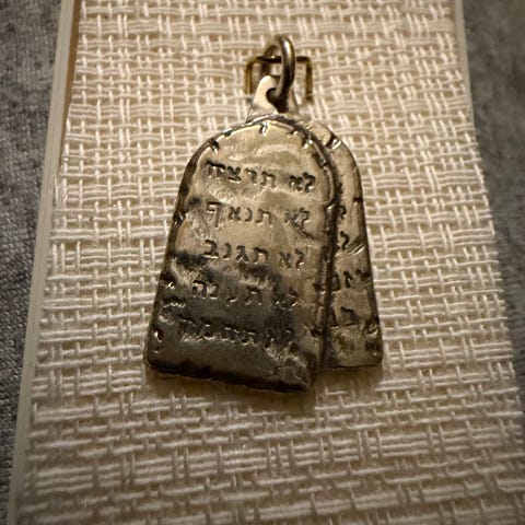 Hopeariipus, jonka laatassa lukee Herran siunaus muinaishepreaksi. Ketjun pituus noin 42 cm. Laatan koko 2,2 cm x 1,1 cm. Ei ole ollut koskaan käytössä.