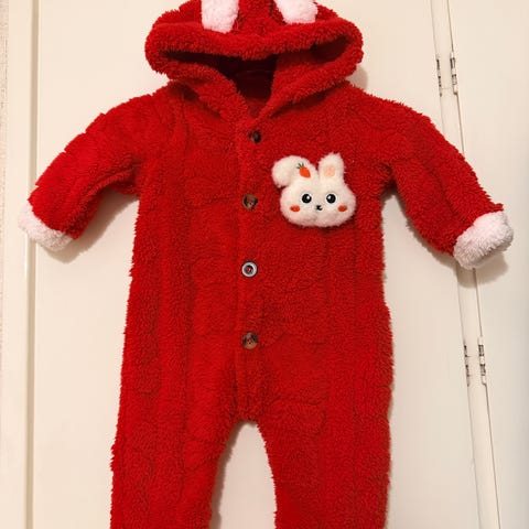 Myydään kuvanmukainen possupuku vauvalle kokoa 12-24 kk.