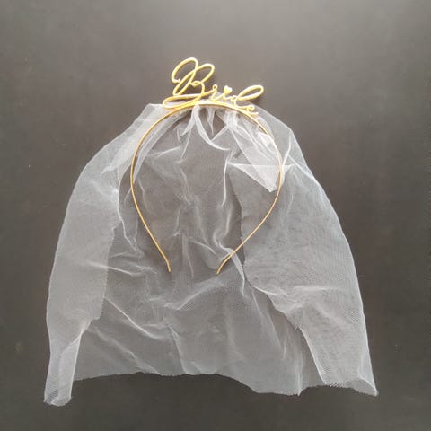 Tästä seuraaviin polttareihin 1kpl Bride to be -nauha ja 5kpl Team Bride -nauhoja (yhdessä huomasin kuvatessa takapuolella pari tahraa, en ole yrittänyt pestä). Kaupan päälle lyhyt huntu.