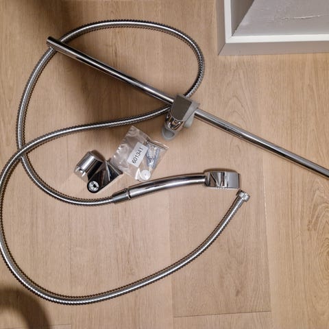 Purettu pois remontin edestä, suoraan käytöstä. Toimiva. Mukaan suihkupää