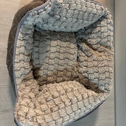 My Home -merkkinen pehmeä reunallinen koiranpeti. Väri harmaa. Halkaisija 50 cm. Hyvässä käytetyssä kunnossa. Pesu jää ostajalle. Nouto Vantaan Nikinmäestä. Ei pitkiä varailuja.