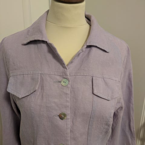 Tyylikäs jakku joulujuhliin. Pellavaa jossa hienostunut hohtava pinnoite.