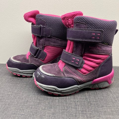 Syperfitin kevyet Goretex talvikengät. Nämä hyvässä käytetyssä kunnossa. Mustassa pinnassa jo hivenen värin haalentumaa ja valkoisissa pohjissa tummentumaa.