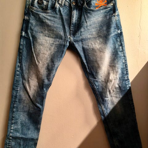 Siistit miesten farkut kuluneilla yksityiskohdilla.