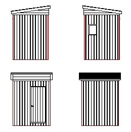 Huopakatto ja ulkoseinät maalattu puu paneli.