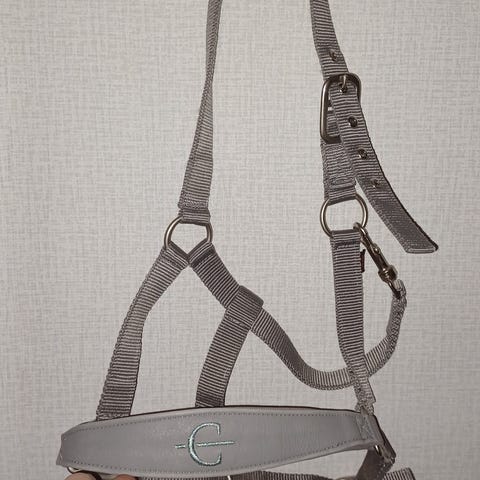 Muutaman kerran käytetty ja sen jälkeen varustehuoneessa roikkunut Dually Halter riimu. Ei siis rispaantumaa, haalistumaa, venymää soljen rei'issä tms, riimu alkuperäisen jämäkkää materiaalia.