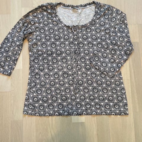 Mika Piiraisen suunnittelema Marimekko-paita Kivet-kuvioilla. Väri harvinainen oranssinkeltainen. Pituutta lyhennetty, ommel hieman purkautunut. Pituus 54 cm. Kai-kai 45 cm.