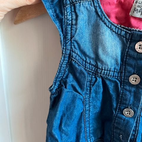 Farkkuhaalari vauvalle koossa 80. H&Msta ostettu. Käytännölliset napit helpottavat vaipan vaihdossa.