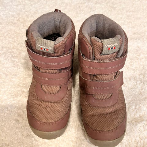 Viking lasten kengät, koko 36, musta väri. Kengät ovat käytetyt ja niissä näkyy käytön jälkä.
